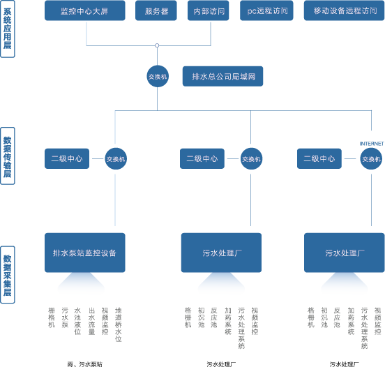 排水泵站監(jiān)控系統(tǒng)是針對(duì)各類排水泵站實(shí)現(xiàn)遠(yuǎn)程監(jiān)測與操控的綜合信息管理平臺(tái)。借助管理平臺(tái),泵站管理人員可實(shí)現(xiàn)各排水泵站的運(yùn)轉(zhuǎn)情況和排水設(shè)備的運(yùn)行參數(shù)監(jiān)測,可遠(yuǎn)程控制排水設(shè)備的啟停、泵站內(nèi)全景及重要工位圖像監(jiān)測;針對(duì)城市排澇實(shí)時(shí)監(jiān)控低洼積水水位,實(shí)現(xiàn)泵站聯(lián)動(dòng)控制,和排澇應(yīng)急調(diào)度管理。